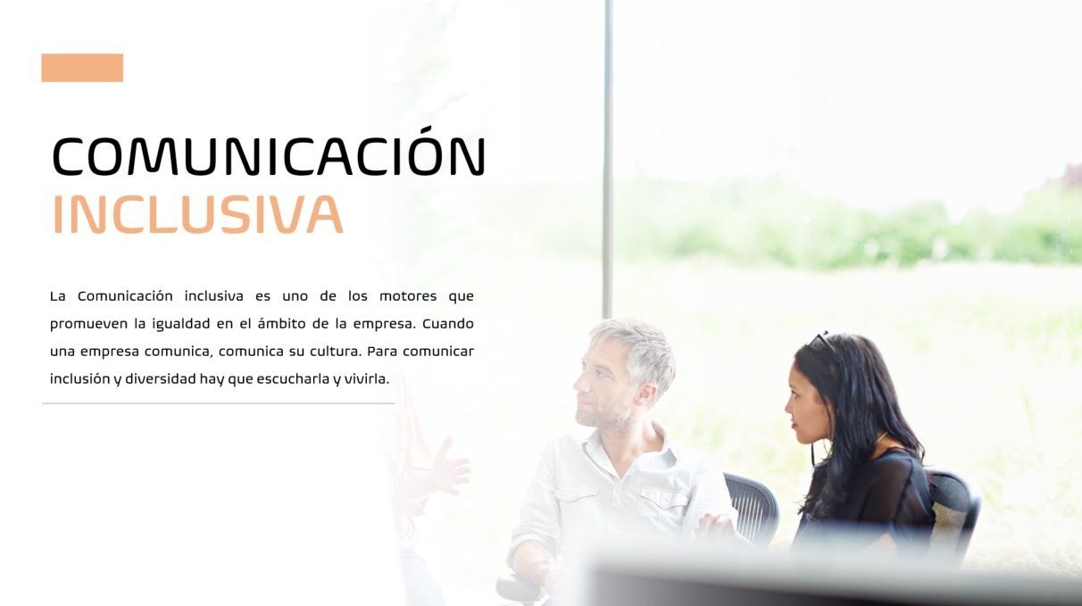 En definitiva, todas las personas que trabajan en una empresa generan diariamente mensajes, no solo las áreas especializadas de Comunicación. Por ello, su formación va a ser una pieza clave para transformar el lenguaje y los recursos gráficos que utilizan para comunicar de manera inclusiva en la empresa, conectando de manera más auténtica con TODAS las audiencias, sin dejar a nadie fuera. Igualmente, cuidando no transmitir mensajes que promuevan cualquier discriminación.